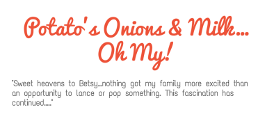 Sweet heavens to Betsy…nothing got my family more excited than an opportunity to lance or pop something. This fascination has continued…..