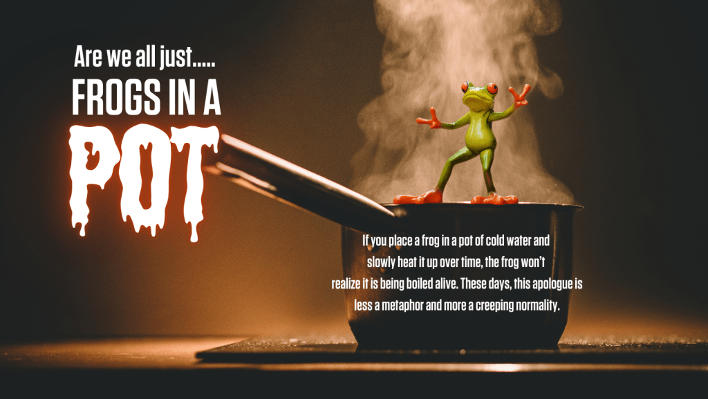 Frogs In a Pot Feel free to share!Tweet Click to print (Opens in new window) Print Click to email a link to a friend (Opens in new window) Email Like Loading...